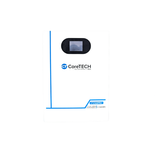 Upgrade your power system with the CoreTECH CT2560PRO 24V (25.6V) 100Ah LiFePO4 Battery, engineered to deliver 2.56 kWh of high-efficiency, long-lasting energy for solar setups, RVs, home backup, marine use, and off-grid applications. Designed with advanced Lithium Iron Phosphate (LiFePO4) technology, this battery ensures top-tier safety, superior cycle...