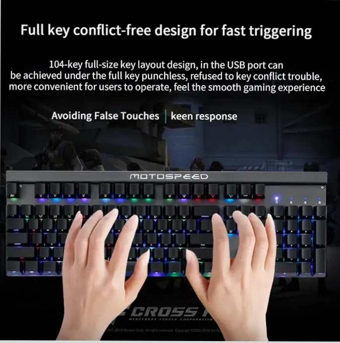 High Quality and Reliable Performance: Compact ergonomic design with plate-mounted mechanical keys and switches and high-quality durable ABS construction, the 103-key space-saving mechanical keyboard design frees up workspace on your desk without sacrificing performance and comfort during gaming sessions.